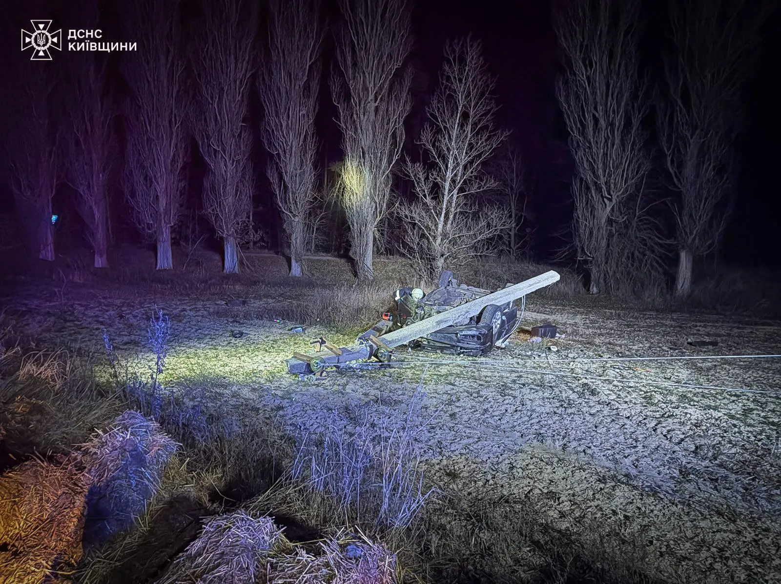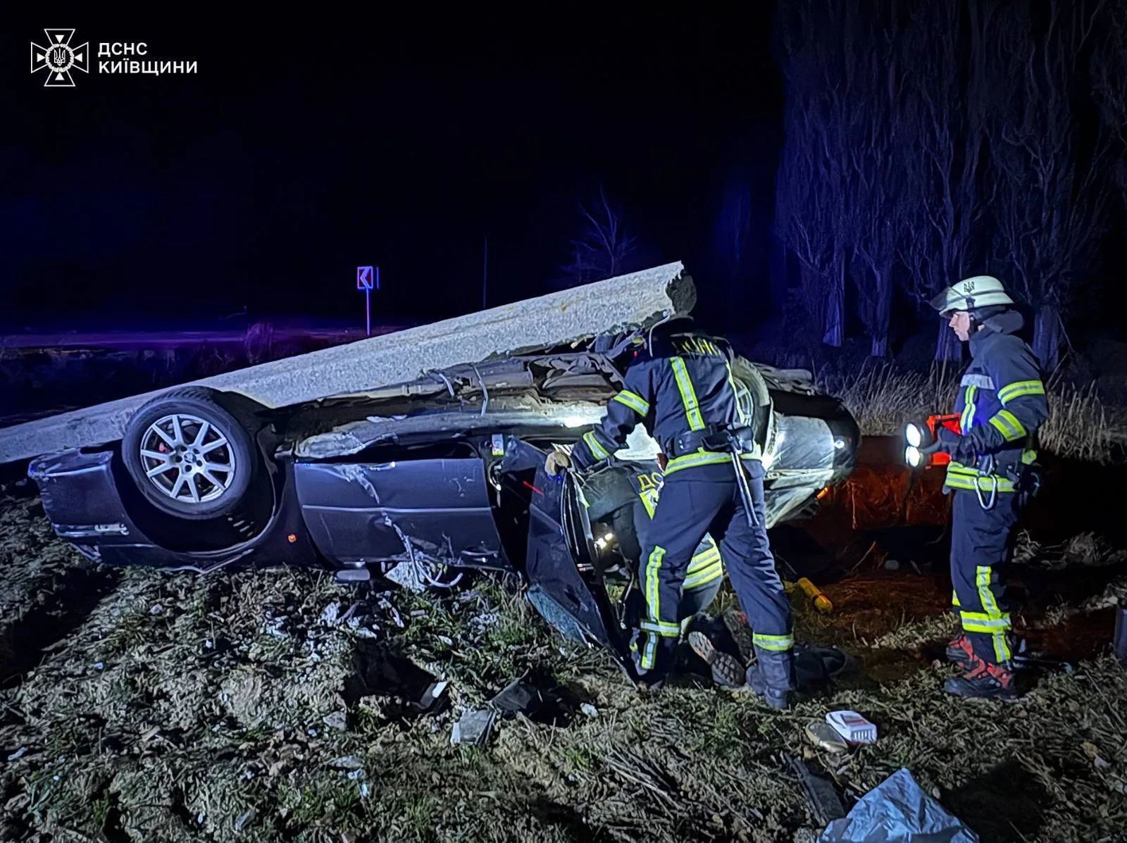 «По прибуттю рятувальниками встановлено, що легковий автомобіль не впорався з керуванням та здійснив зіткнення з електроопорою з подальшим перекиданням на дах, унаслідок чого в салоні автомобіля було затиснуто 3 людини», — йдеться в повідомленні.
