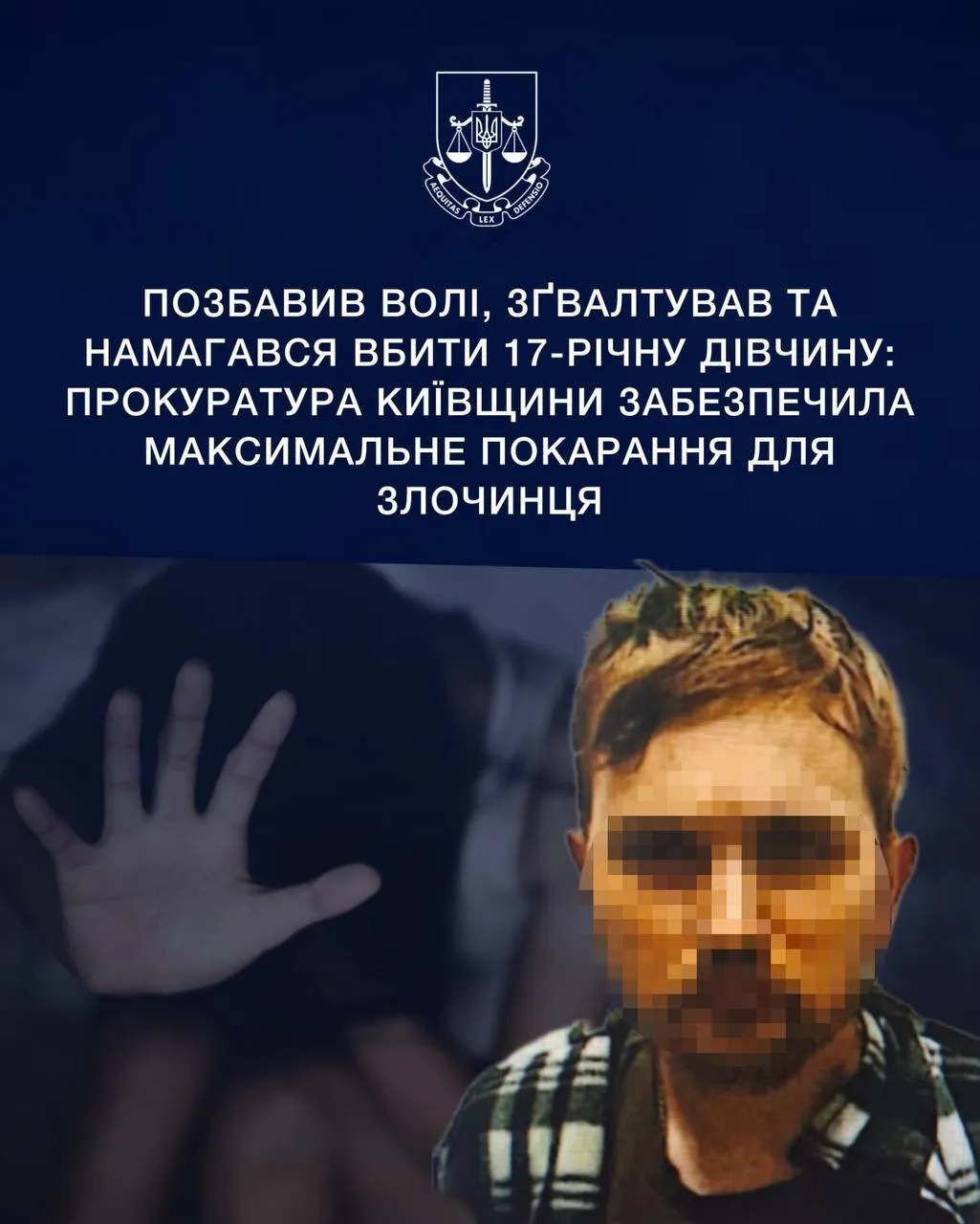 На Київщині суд виніс вирок чоловіку, який зґвалтував дівчину. Щоб приховати злочин зловмисник намагався зарізати свою жертву, проте вона, завдяки лікарям, вижила.