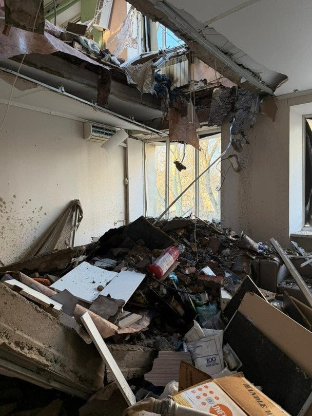 "Пошкоджено цивільну інфраструктуру міста, а також медичний заклад — КНП "Пологовий будинок №5". Зафіксовано влучання у дах будівлі", — йдеться у повідомленні.