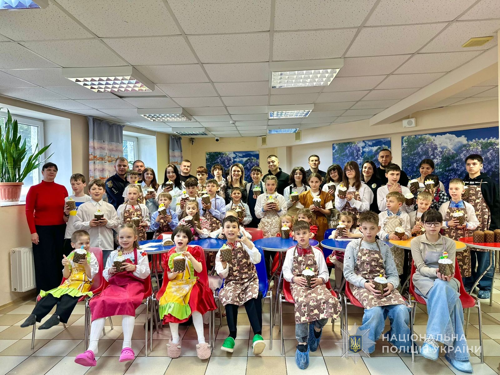 Перша відбулася у центрі міста на базі благодійного фонду, де правоохоронці організували для дітей-переселенців національно-патріотичний захід. Малеча долучилася до майстер-класу з виготовлення великодніх писанок: діти розмальовували картонні макети, створювали власні унікальні орнаменти та прикрашали ними дерева, додаючи простору яскравих барв. Під час заходу учасникам також розповіли про українські традиції святкування Великодня та їх значення.