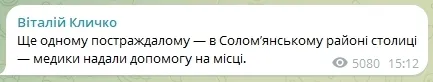 Крім того, у Соломʼянському районі уламки БпЛА впали на територію цвинтаря. У цьому районі, за інформацією мера, ще одному постраждалому медики надали допомогу на місці.